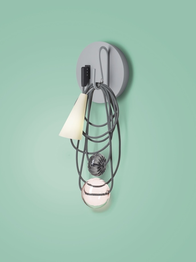 De wandlamp Filo, ontworpen door designer Andrea Anastasio voor Foscarini, beweegt zich tussen lichtsculptuur en designobject, straalt een speelse lichtheid uit en neemt zichzelf minder serieus. Elk element - de mondgeblazen glazen bollen, de lange gekleurde kabel en de kegelvormige porseleinen diffuser - is artistiek geënsceneerd en doet in de losjes gedrapeerde compositie denken aan een ketting die nonchalant aan een haak hangt. De Filo-wandlamp zorgt voor sfeervol warm wit licht dat naar beneden gericht is en in een mum van tijd een absolute blikvanger wordt, in welke ruimte hij ook hangt. Filo van Foscarini wordt geleverd met een geschikte lichtbron. De wandlamp is verkrijgbaar in verschillende versies, elk met een andere bol- en kabelkleur en een andere vorm.